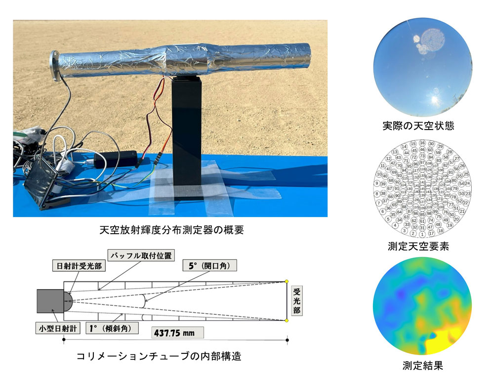 Raspberry Piによりサーボモーターを制御し、小型日射計と組み合わせ、天空放射輝度分布(天空における日射の強さの分布)測定器を製作しました。